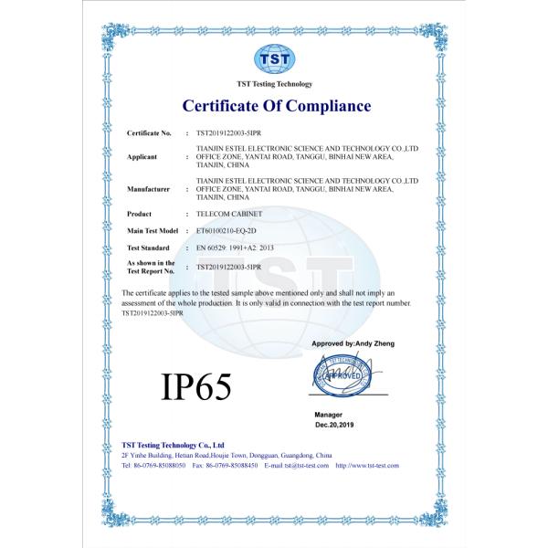 9. IP65 Certificate of Outdoor Telecom Cabinet